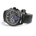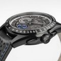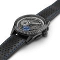 As especificações deste cronógrafo Hamilton Jazzmaster Performer mantêm-se inalteradas em relação às edições anteriores da mesma família. Apresenta um movimento automático H-60 com 60 horas de reserva de marcha, indicação de data e luneta com escala taquimétrica. A diferença é que esta última adição tem um aspeto muito mais desportivo devido à elegante caixa e luneta pretas e ao mostrador sunray cinzento com um pequeno mostrador de segundos azul contrastante. Assim como a bracelete de corrida perfurada com costura azul e fivela de abertura. Outra caraterística marcante é a roda da data exposta, que acrescenta outra camada de profundidade ao relógio.