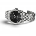 Este relógio Hamilton tem uma caixa de Inox com um diâmetro de 40 mm e está equipado com uma bracelete de Inox. A caixa possui um movimento ETA e o relógio tem um vidro Safira.