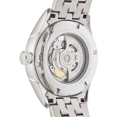 O Hamilton Jazzmaster Viewmatic equilibra perfeitamente o formal e o desportivo, combinando uma caixa lindamente acabada com uma mistura de superfícies polidas e escovadas e um intrigante mostrador de coração aberto exibindo os elementos mecânicos que batem por baixo. Os recortes primorosamente executados no mostrador têm uma luneta de alto polimento em transição nítida para uma borda interna escovada, direcionando o olhar para o movimento automático H-10. Este movimento Hamilton muito preciso contém uma mola de equilíbrio Nivachron não magnética e tem uma reserva de energia de nada menos que 80 horas. O Jazzmaster Viewmatic Open Heart Auto está disponível numa variedade de cores e em tamanhos de caixa de 40 mm e 36 mm, para homens e mulheres.