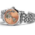 O Hamilton Jazzmaster Viewmatic equilibra perfeitamente o formal e o desportivo, combinando uma caixa lindamente acabada com uma mistura de superfícies polidas e escovadas e um intrigante mostrador de coração aberto exibindo os elementos mecânicos que batem por baixo. Os recortes primorosamente executados no mostrador têm uma luneta de alto polimento em transição nítida para uma borda interna escovada, direcionando o olhar para o movimento automático H-10. Este movimento Hamilton muito preciso contém uma mola de equilíbrio Nivachron não magnética e tem uma reserva de energia de nada menos que 80 horas. O Jazzmaster Viewmatic Open Heart Auto está disponível numa variedade de cores e em tamanhos de caixa de 40 mm e 36 mm, para homens e mulheres.