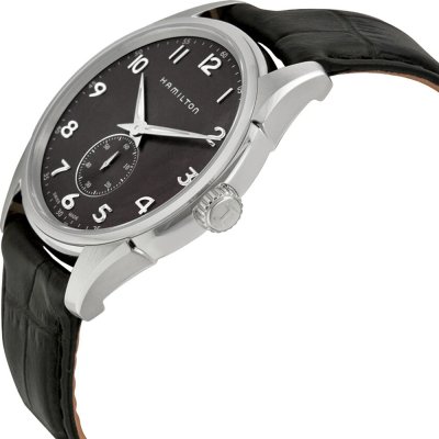 Este relógio Hamilton tem uma caixa de Inox com um diâmetro de 40 mm e está equipado com uma bracelete de couro. A caixa possui um movimento ETA e o relógio tem um vidro Safira.