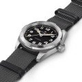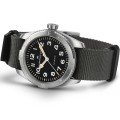 Este relógio Hamilton tem uma caixa de Inox com um diâmetro de 37 mm e está equipado com uma bracelete de Tecido. A caixa possui um movimento ETA e o relógio tem um vidro Safira.