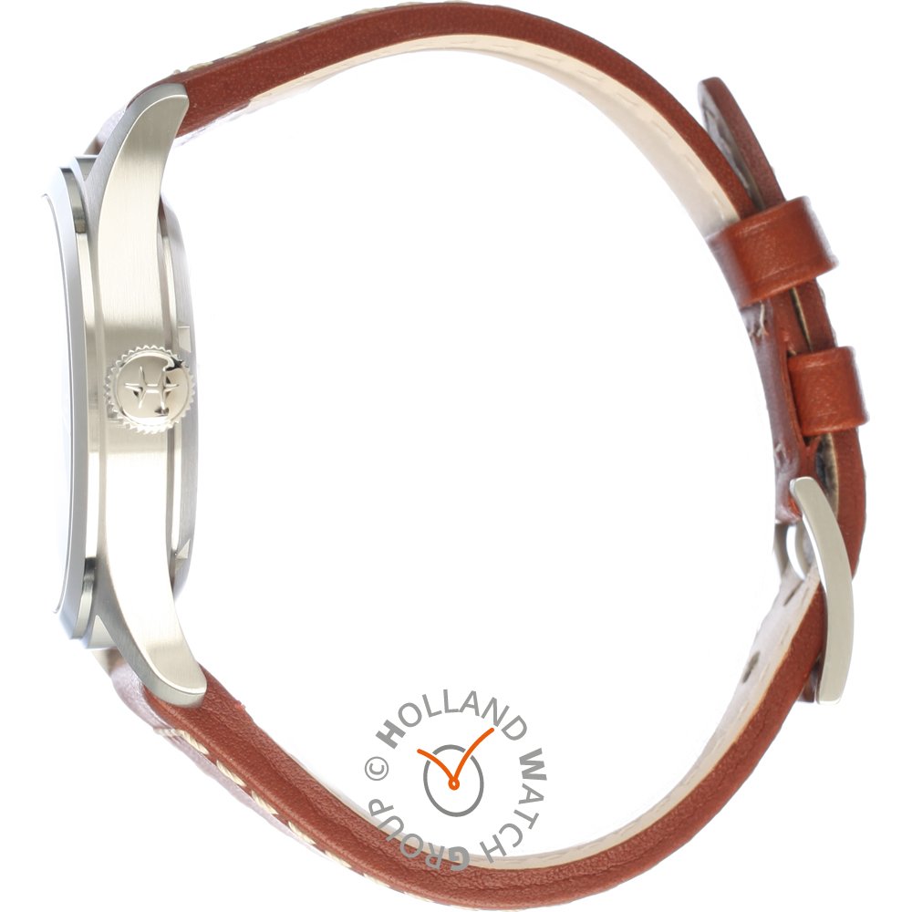 Este relógio Hamilton tem uma caixa de Inox com um diâmetro de 38 mm e está equipado com uma bracelete de couro. A caixa possui um movimento ETA e o relógio tem um vidro Safira.