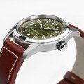 Este relógio Hamilton tem uma caixa de Inox com um diâmetro de 38 mm e está equipado com uma bracelete de couro. A caixa possui um movimento ETA e o relógio tem um vidro Safira.