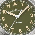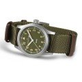 Este relógio Hamilton tem uma caixa de Inox com um diâmetro de 33 mm e está equipado com uma bracelete de Tecido. A caixa possui um movimento ETA e o relógio tem um vidro Safira.