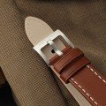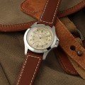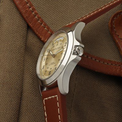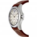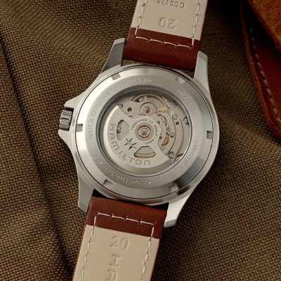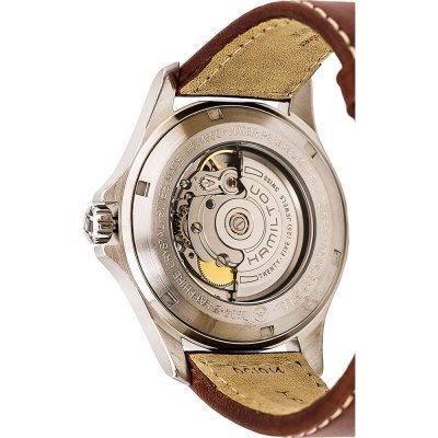 Este relógio Hamilton tem uma caixa de Inox com um diâmetro de 40 mm e está equipado com uma bracelete de couro. A caixa possui um movimento ETA e o relógio tem um vidro Safira.