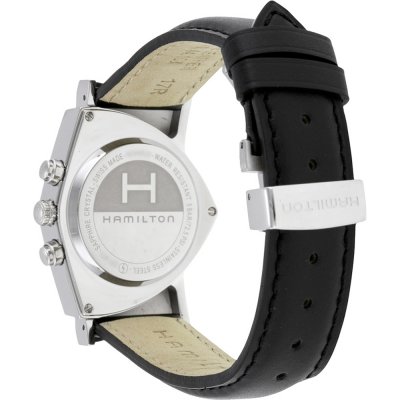 Este relógio Hamilton tem uma caixa de Inox com um diâmetro de 32.3 mm e está equipado com uma bracelete de couro. A caixa possui um movimento ETA e o relógio tem um vidro Safira.