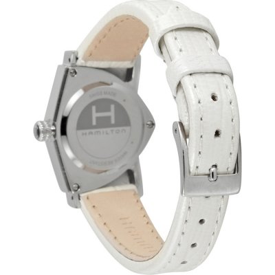 Este relógio Hamilton tem uma caixa de Inox com um diâmetro de 24 mm e está equipado com uma bracelete de couro. A caixa possui um movimento ETA e o relógio tem um vidro Mineral.