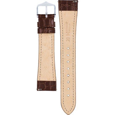 Esta bracelete de relógio Hirsch é feita de couro e está fixada ao relógio através de pinos carregados por mola de liberação rápida. A bracelete tem uma largura de 20 mm e fecha através de fecho. A bracelete tem uma montagem a direito, o que significa que esta bracelete é adequada para todos os relógios com montagem da bracelete a direito.