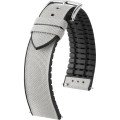 Esta bracelete de relógio Hirsch é feita de couro vegan e está fixada ao relógio através de pinos carregados por mola de liberação rápida. A bracelete tem uma largura de 20 mm e fecha através de fecho. A bracelete tem uma montagem a direito, o que significa que esta bracelete é adequada para todos os relógios com montagem da bracelete a direito.