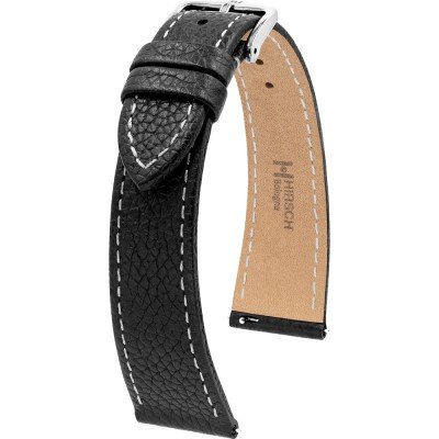 Esta bracelete de relógio Hirsch é feita de couro e está fixada ao relógio através de pinos carregados por mola de liberação rápida. A bracelete tem uma largura de 18 mm e fecha através de fecho. A bracelete tem uma montagem a direito, o que significa que esta bracelete é adequada para todos os relógios com montagem da bracelete a direito.