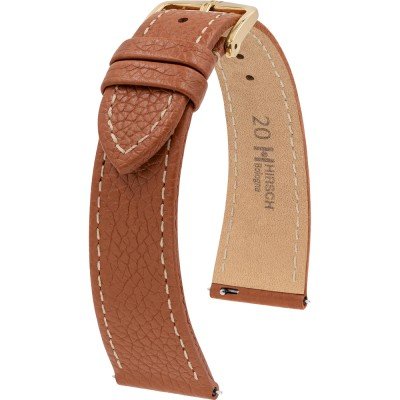 Esta bracelete de relógio Hirsch é feita de couro e está fixada ao relógio através de pinos carregados por mola de liberação rápida. A bracelete tem uma largura de 20 mm e fecha através de fecho. A bracelete tem uma montagem a direito, o que significa que esta bracelete é adequada para todos os relógios com montagem da bracelete a direito.