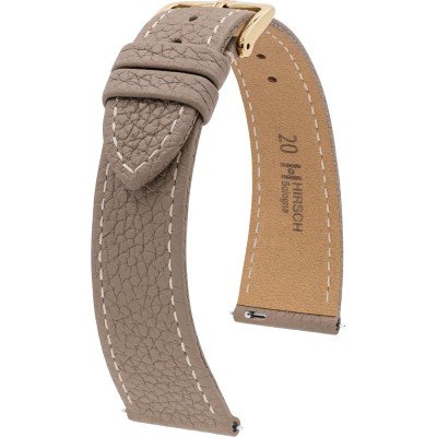 Esta bracelete de relógio Hirsch é feita de couro e está fixada ao relógio através de pinos carregados por mola de liberação rápida. A bracelete tem uma largura de 20 mm e fecha através de fecho. A bracelete tem uma montagem a direito, o que significa que esta bracelete é adequada para todos os relógios com montagem da bracelete a direito.