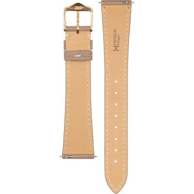 Esta bracelete de relógio Hirsch é feita de couro e está fixada ao relógio através de pinos carregados por mola de liberação rápida. A bracelete tem uma largura de 18 mm e fecha através de fecho. A bracelete tem uma montagem a direito, o que significa que esta bracelete é adequada para todos os relógios com montagem da bracelete a direito.