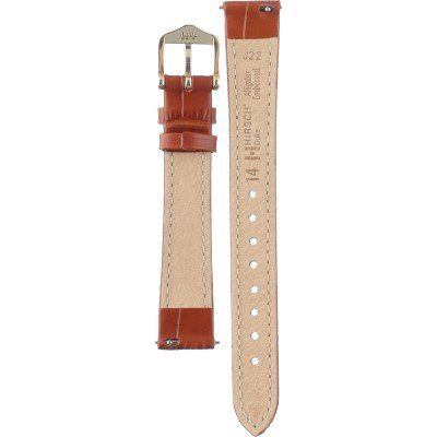 Esta bracelete de relógio Hirsch é feita de couro e está fixada ao relógio através de pinos carregados por mola de liberação rápida. A bracelete tem uma largura de 14 mm e fecha através de fecho. A bracelete tem uma montagem a direito, o que significa que esta bracelete é adequada para todos os relógios com montagem da bracelete a direito.