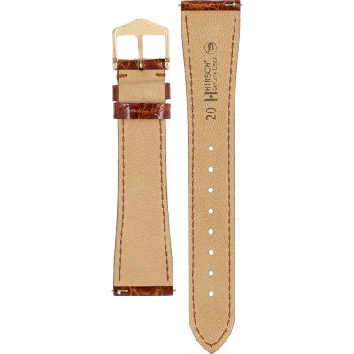 Esta bracelete de relógio Hirsch é feita de couro e está fixada ao relógio através de pinos carregados por mola de liberação rápida. A bracelete tem uma largura de 20 mm e fecha através de fecho. A bracelete tem uma montagem a direito, o que significa que esta bracelete é adequada para todos os relógios com montagem da bracelete a direito.