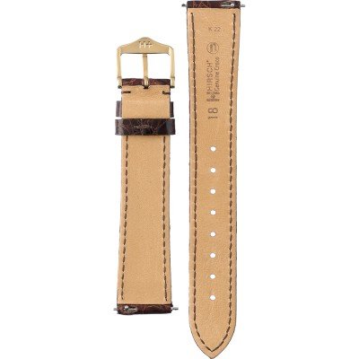 Esta bracelete de relógio Hirsch é feita de couro e está fixada ao relógio através de pinos carregados por mola de liberação rápida. A bracelete tem uma largura de 18 mm e fecha através de fecho. A bracelete tem uma montagem a direito, o que significa que esta bracelete é adequada para todos os relógios com montagem da bracelete a direito.