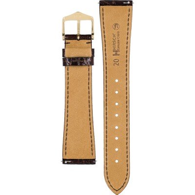 Esta bracelete de relógio Hirsch é feita de couro e está fixada ao relógio através de pinos carregados por mola de liberação rápida. A bracelete tem uma largura de 20 mm e fecha através de fecho. A bracelete tem uma montagem a direito, o que significa que esta bracelete é adequada para todos os relógios com montagem da bracelete a direito.