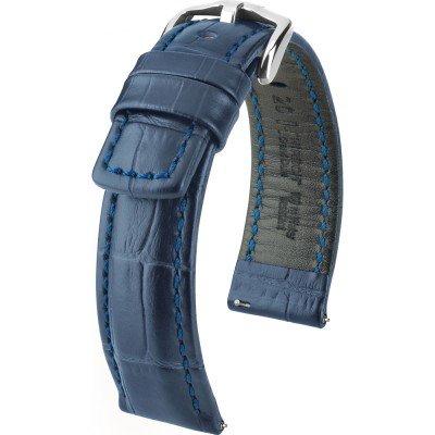 Esta bracelete de relógio Hirsch é feita de couro e está fixada ao relógio através de pinos carregados por mola de liberação rápida. A bracelete tem uma largura de 20 mm e fecha através de fecho. A bracelete tem uma montagem a direito, o que significa que esta bracelete é adequada para todos os relógios com montagem da bracelete a direito.