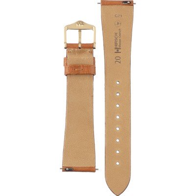 Esta bracelete de relógio Hirsch é feita de couro e está fixada ao relógio através de pinos carregados por mola de liberação rápida. A bracelete tem uma largura de 20 mm e fecha através de fecho. A bracelete tem uma montagem a direito, o que significa que esta bracelete é adequada para todos os relógios com montagem da bracelete a direito.