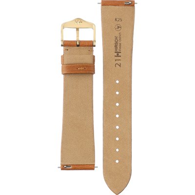 Esta bracelete de relógio Hirsch é feita de couro e está fixada ao relógio através de pinos carregados por mola de liberação rápida. A bracelete tem uma largura de 21 mm e fecha através de fecho. A bracelete tem uma montagem a direito, o que significa que esta bracelete é adequada para todos os relógios com montagem da bracelete a direito.