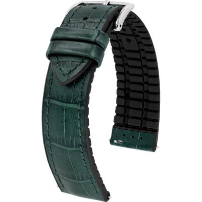 Esta bracelete de relógio Hirsch é feita de couro e está fixada ao relógio através de pinos carregados por mola de liberação rápida. A bracelete tem uma largura de 20 mm e fecha através de fecho. A bracelete tem uma montagem a direito, o que significa que esta bracelete é adequada para todos os relógios com montagem da bracelete a direito.
