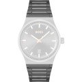 Esta bracelete de relógio Hugo Boss é feita de aço inoxidável e está fixada ao relógio através de pinos de pressão. A bracelete tem uma largura de 20 mm e fecha através de fivela dobrável com botões de pressão. A bracelete não tem uma montagem a direito, o que significa que esta bracelete só é adequada para os relógios listados abaixo.