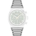 Esta bracelete de relógio Hugo Boss é feita de aço inoxidável e está fixada ao relógio através de pinos de pressão. A bracelete tem uma largura de 21 mm e fecha através de fivela dobrável com botões de pressão. A bracelete não tem uma montagem a direito, o que significa que esta bracelete só é adequada para os relógios listados abaixo.