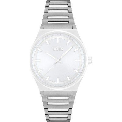 Esta bracelete de relógio Hugo Boss é feita de aço inoxidável e está fixada ao relógio através de pinos de pressão. A bracelete tem uma largura de 17 mm e fecha através de fivela dobrável com botões de pressão. A bracelete não tem uma montagem a direito, o que significa que esta bracelete só é adequada para os relógios listados abaixo.