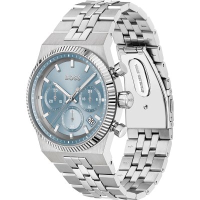 Este relógio Hugo Boss tem uma caixa de Inox com um diâmetro de 41 mm e está equipado com uma bracelete de Inox. A caixa possui um movimento Seiko Instruments Inc. e o relógio tem um vidro Mineral.