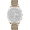 Esta bracelete de relógio Hugo Boss é feita de aço inoxidável e está fixada ao relógio através de pinos de pressão. A bracelete tem uma largura de 22 mm e fecha através de fivela dobrável com botões de pressão. A bracelete não tem uma montagem a direito, o que significa que esta bracelete só é adequada para os relógios listados abaixo.