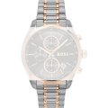 Esta bracelete de relógio Hugo Boss é feita de aço inoxidável e está fixada ao relógio através de pinos de pressão. A bracelete tem uma largura de 22 mm e fecha através de fivela dobrável com botões de pressão. A bracelete não tem uma montagem a direito, o que significa que esta bracelete só é adequada para os relógios listados abaixo.
