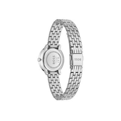 Este relógio Hugo Boss tem uma caixa de Inox com um diâmetro de 28 mm e está equipado com uma bracelete de Inox. A caixa possui um movimento Seiko Instruments Inc. e o relógio tem um vidro Mineral.