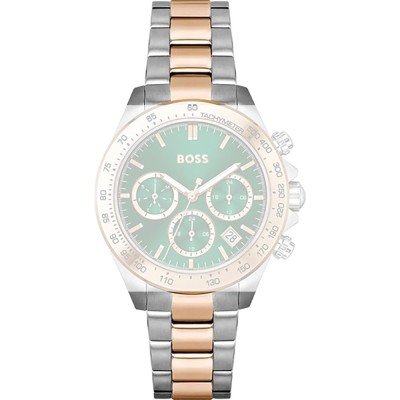 Esta bracelete de relógio Hugo Boss é feita de aço inoxidável e está fixada ao relógio através de pinos de pressão. A bracelete tem uma largura de 18 mm e fecha através de fivela dobrável com botões de pressão. A bracelete não tem uma montagem a direito, o que significa que esta bracelete só é adequada para os relógios listados abaixo.