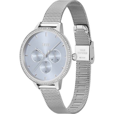Este relógio Hugo Boss tem uma caixa de Inox com um diâmetro de 40 mm e está equipado com uma bracelete de Inox. A caixa possui um movimento Miyota e o relógio tem um vidro Mineral.