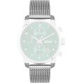 Esta bracelete de relógio Hugo Boss é feita de aço inoxidável e está fixada ao relógio através de pinos de pressão. A bracelete tem uma largura de 22 mm e fecha através de fecho milanese. A bracelete tem uma montagem a direito, o que significa que esta bracelete é adequada para todos os relógios Hugo Boss com montagem da bracelete a direito.