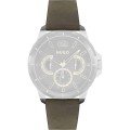 Esta bracelete de relógio Hugo Boss é feita de couro e está fixada ao relógio através de pinos de pressão. A bracelete tem uma largura de 22 mm e fecha através de fecho. A bracelete tem uma montagem a direito, o que significa que esta bracelete é adequada para todos os relógios Hugo Boss com montagem da bracelete a direito.