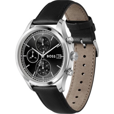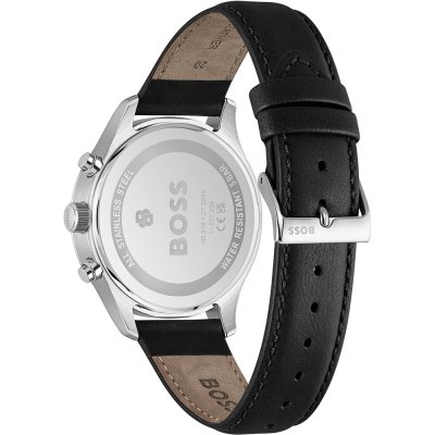 Este relógio Hugo Boss tem uma caixa de Inox com um diâmetro de 41 mm e está equipado com uma bracelete de couro.