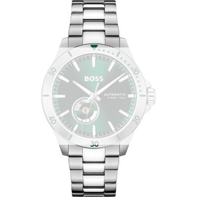 Esta bracelete de relógio Hugo Boss é feita de aço inoxidável e está fixada ao relógio através de pinos de pressão. A bracelete tem uma largura de 21 mm e fecha através de fivela dobrável com botões de pressão. A bracelete não tem uma montagem a direito, o que significa que esta bracelete só é adequada para os relógios listados abaixo.