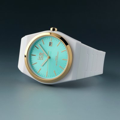 Este relógio Ice-Watch tem uma caixa de Resina com um diâmetro de 41 mm e está equipado com uma bracelete de borracha. A caixa possui um movimento Ronda e o relógio tem um vidro Safira.
