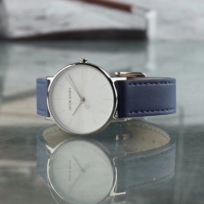 Este relógio Jacob Jensen tem uma caixa de Titânio com um diâmetro de 32 mm e está equipado com uma bracelete de couro. A caixa possui um movimento Miyota e o relógio tem um vidro Safira.