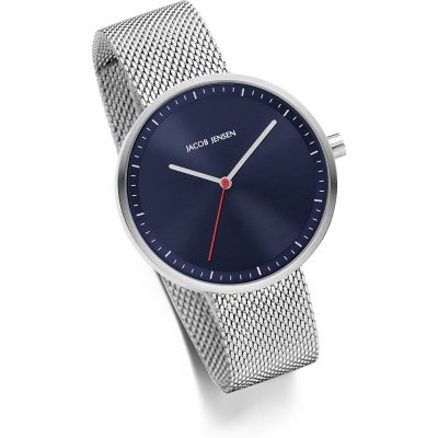 Este relógio Jacob Jensen tem uma caixa de Inox com um diâmetro de 36 mm e está equipado com uma bracelete de Inox. A caixa possui um movimento Ronda e o relógio tem um vidro Mineral.
