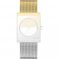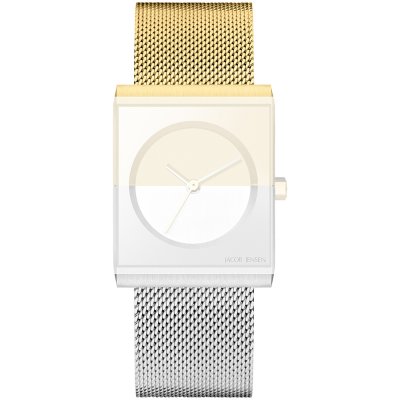 Esta bracelete de relógio Jacob Jensen é feita de aço inoxidável e está fixada ao relógio através de pinos de pressão. A bracelete tem uma largura de 18 mm e fecha através de fecho milanese. A bracelete tem uma montagem a direito, o que significa que esta bracelete é adequada para todos os relógios Jacob Jensen com montagem da bracelete a direito.