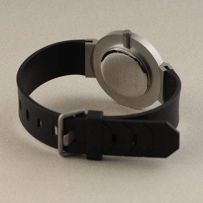 Este relógio Jacob Jensen tem uma caixa de Inox com um diâmetro de 35 mm e está equipado com uma bracelete de borracha.