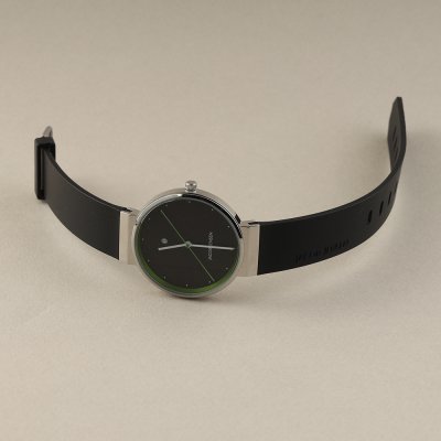 Este relógio Jacob Jensen tem uma caixa de Inox com um diâmetro de 35 mm e está equipado com uma bracelete de borracha. A caixa possui um movimento Ronda e o relógio tem um vidro Mineral.
