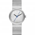 Este relógio Jacob Jensen tem uma caixa de Inox com um diâmetro de 29 mm e está equipado com uma bracelete de Inox. A caixa possui um movimento Ronda e o relógio tem um vidro Mineral.