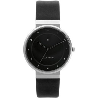 Esta bracelete de relógio Jacob Jensen é feita de couro e está fixada ao relógio através de deslizar. A bracelete tem uma largura de 17 mm e fecha através de fecho. A bracelete não tem uma montagem a direito, o que significa que esta bracelete só é adequada para os relógios listados abaixo.