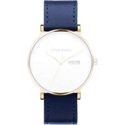 Esta bracelete de relógio Jacob Jensen é feita de couro vegan e está fixada ao relógio através de pinos de pressão. A bracelete tem uma largura de 20 mm e fecha através de fecho. A bracelete tem uma montagem a direito, o que significa que esta bracelete é adequada para todos os relógios Jacob Jensen com montagem da bracelete a direito.