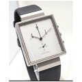 Este relógio Jacob Jensen tem uma caixa de Inox com um diâmetro de 32 mm e está equipado com uma bracelete de couro. A caixa possui um movimento ETA e o relógio tem um vidro Safira.