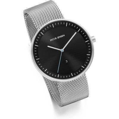 Este relógio Jacob Jensen tem uma caixa de Inox com um diâmetro de 41 mm e está equipado com uma bracelete de Inox. A caixa possui um movimento Ronda e o relógio tem um vidro Mineral.